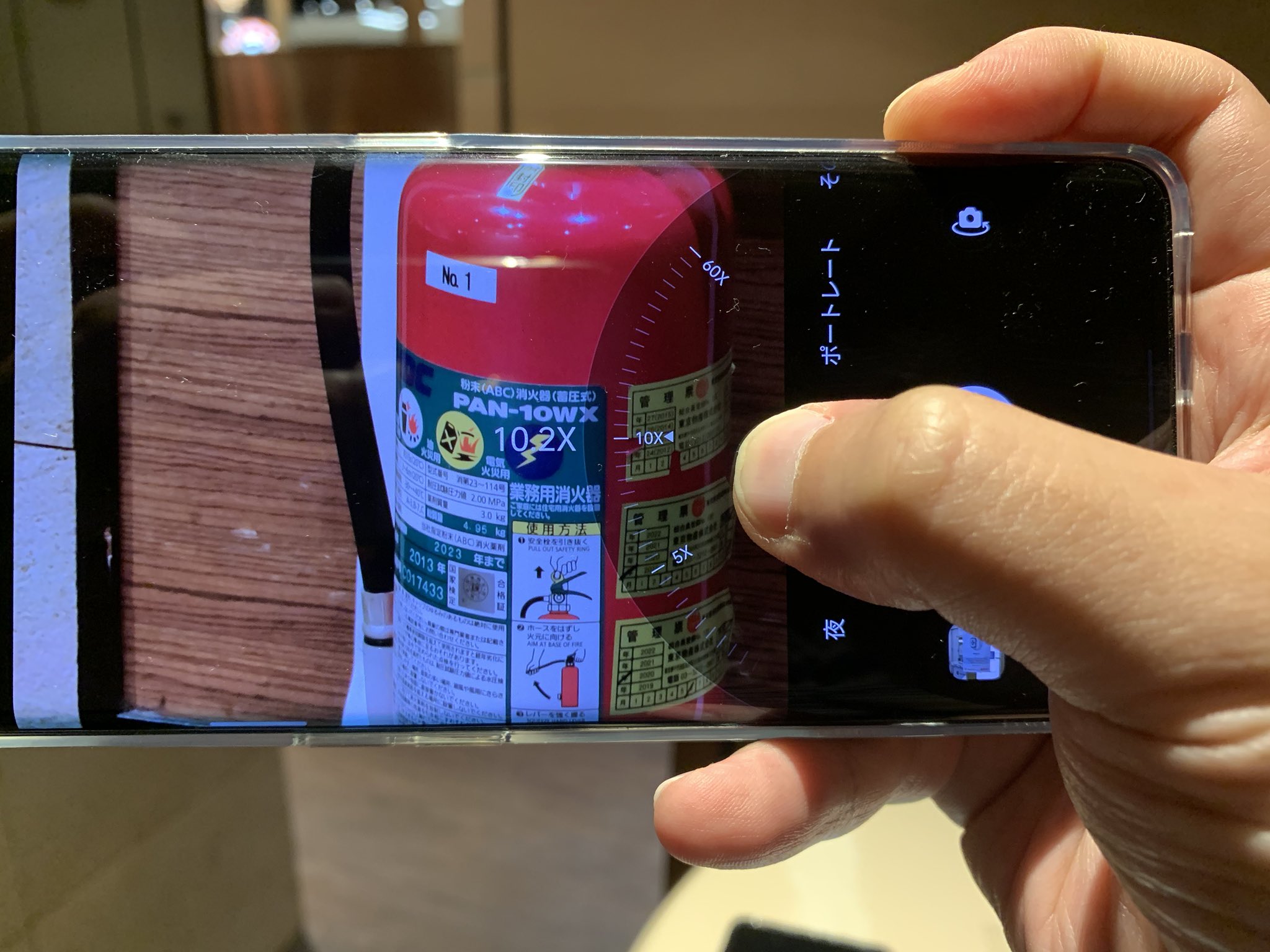 超広角、標準、5倍、10倍がワンタップで切替可能で、そこから微調整して 6 倍とか 7 倍など好きな加減で調整できる。